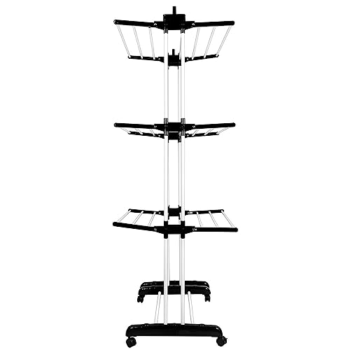 WANZHE - Stendibiancheria a torre, stendibiancheria estensibile e regolabile, grande capienza, con 6 ruote, freno di stazionamento a 360°, plastica e acciaio inossidabile, (nero)
