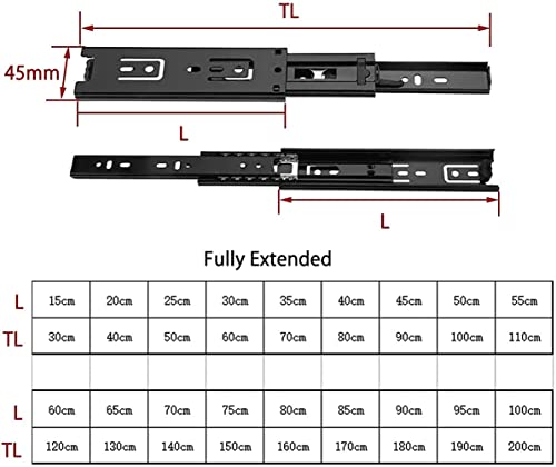 WAOUY Guide per Cassetti Pesanti ad Estrazione Totale 500 600 650 1000mm Guide Telescopiche per Piani Estraibili Guide Cassetto Estrazione Totale 50Kg 1 Paio (Size: 100mm/4inch)