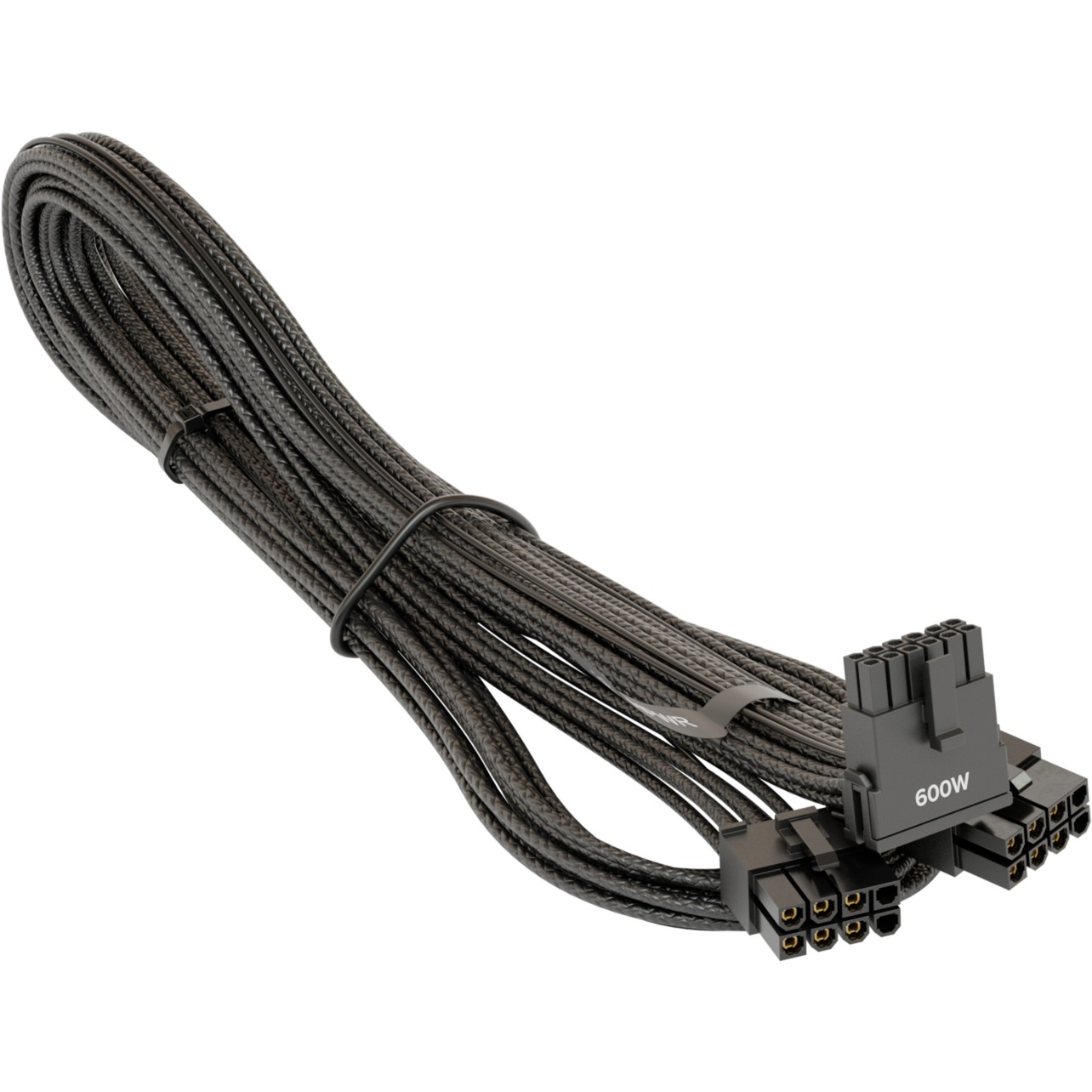 Il cavo adattatore WAPH16884AW / nero di Seasonic è la soluzione ottimale per far funzionare una scheda grafica a 12+4 pin con un alimentatore ATX 2.xx da 850 watt. Il cavo con una bella custodia nera è progettato per 600 watt e consente il funzionamento di tutte le schede grafiche con un connettore 12VHPWR. Allo stesso tempo, è comodo da usare e sostituisce la necessità di un ampio adattatore standard. Il connettore della scheda grafica è inclinato di 90°.