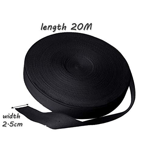 Warehouseshop, rotolo di nastro in cotone saia, da cucito, a spina di pesce, per bandierine, grembiuli (10 / 20 / 50 m), Cotone, Black, 20 Meter (25mm)