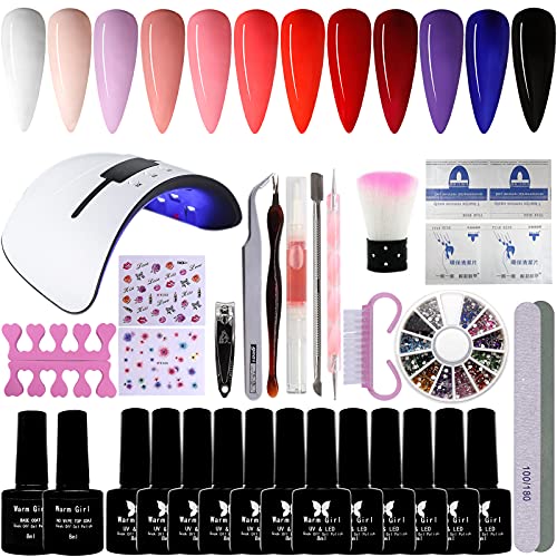 Warm Girl Kit Smalto Semipermanente Unghie, 12 * 8ml Smalto per Unghie in Gel Soak off, 36W Lampada LED/UV, Top and Base Coat Nail Art Kit
