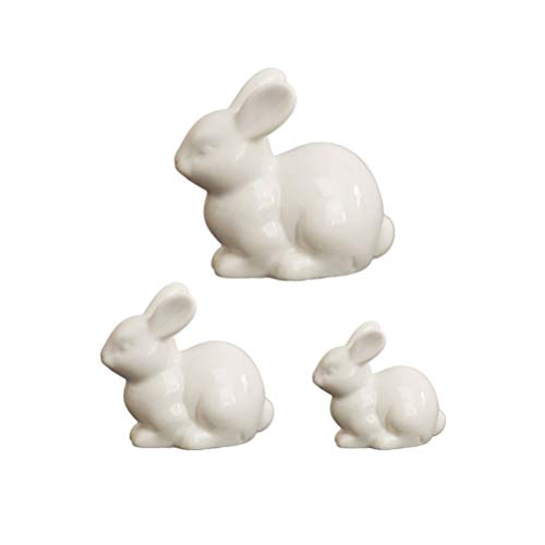 Warmhm 3pcs ceramica coniglio statua coniglietto pasquale mini coniglio bianco micro ornamento paesaggio per la decorazione della casa Pasqua (bianco)