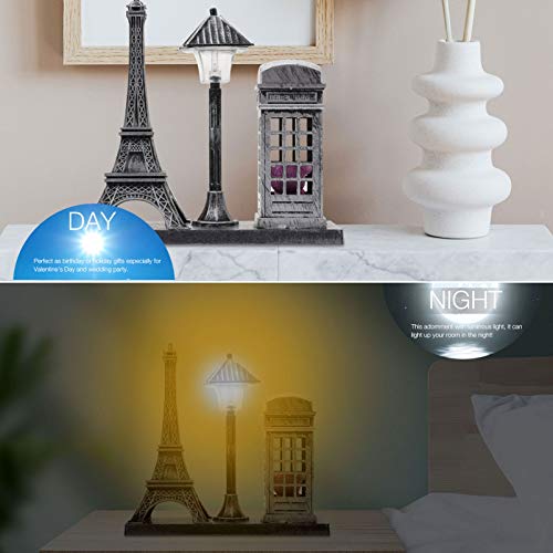 Warmhm Retro luminoso Torre Eiffel Ornamento Lampada Decorativa Torre Eiffel Telefono Cabina Luce Notte (Argento)