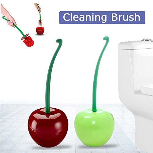 Waroomss - Spazzola e supporto per WC, a forma di ciliegia creativa, con manico in plastica ABS, strumento di pulizia del bagno decorativo