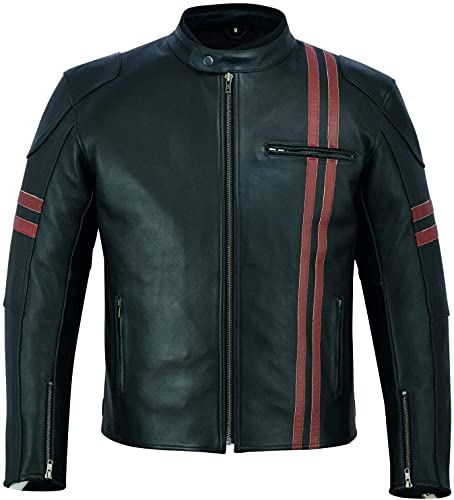 Warrior Gears Giacca in pelle bovina Nappa da uomo, Harley Stripe Style Mens in pelle Giacche da motociclista, in pelle con armature protettive, Rosso, X-Large