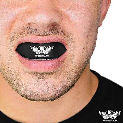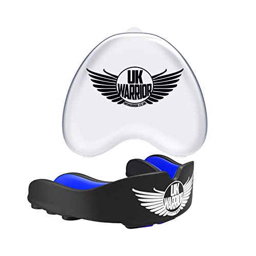 UK Warrior Paradenti ideale per sport di contatto, arti marziali, karate, rugby, boxe, hockey, football, con scatolina, istruzioni per uso e lavaggio [lingua italiana non garantita], Black & Blue