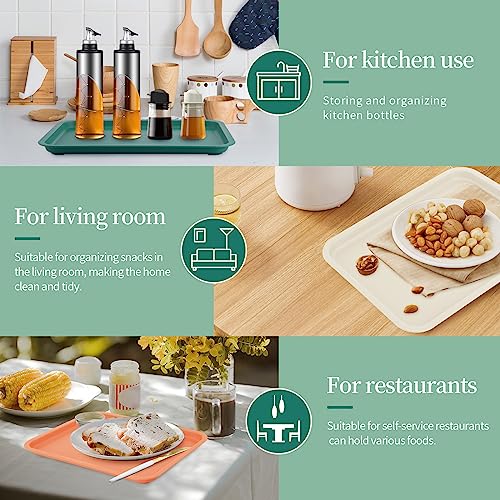 【Vassoio da portata Versatilità】Il vassoio può essere utilizzato per conservare frutta, dessert, tazze da tè, bicchieri d'acqua, organizzare oggetti per l'uso quotidiano e altro ancora. È pratico per trasportare piatti, posate, bicchieri di vetro, tovaglioli e altro ancora. Questo vassoio è l'ideale per la cucina di casa, i ristoranti, i bar e le mense scolastiche.