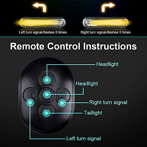 【TELECOMANDO USB RICARICABILE E WIRELESS】 Luci anteriori e posteriori ricaricabili USB, batteria al litio ricaricabile da 4000 mAh integrata per faro anteriore e batteria al litio ricaricabile da 800 mAh integrata per fanale posteriore. Il faro può essere utilizzato per 6-13 ore dopo la ricarica per 3 ore. può essere utilizzato per circa 12 ore dopo la ricarica per 2,5 ore. La luce anteriore è dotata di un altoparlante da 120 decibel con una varietà di effetti sonori.