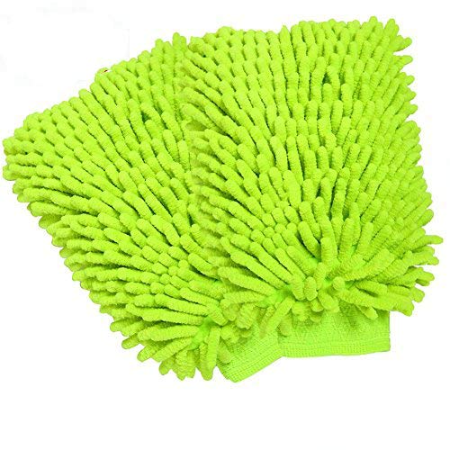 Car Wash Mitt Microfiber Chenille Auto Vehicle Cleaning Gloves, Scratch Free, Lint Free, Ultra-soft, Use Wet or Dry, 2 Pack (lime green)