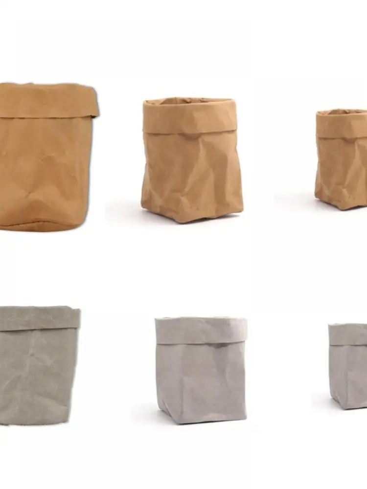 Washable Kraft Paper Bag Reusable Storage Box, Kitch and Plant Storage Box