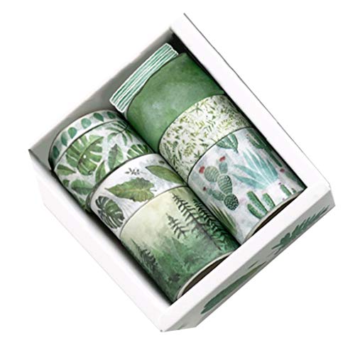 Washi Tape - Nastro adesivo 8 pezzi, motivo foglie verdi, motivo cactus, fai da te