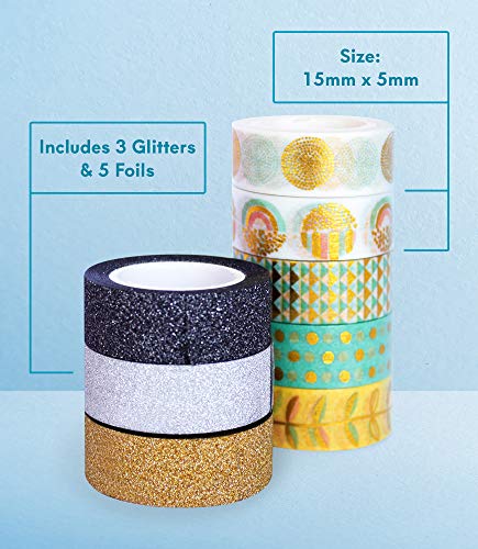 NASTRO DECORATIVO ASSORTITO UNICO: Il washi tape set di MozArt Supplies è caratterizzato da una vasta gamma di nastri con stampe uniche brillanti, floreali e glitterate. I motivi sono stampati con colori scintillanti adatti a diversi usi