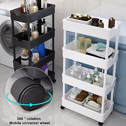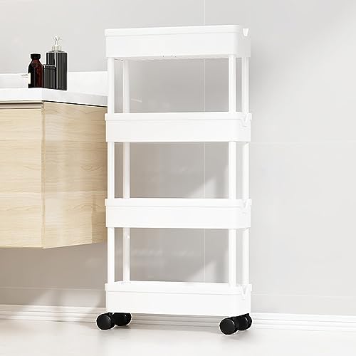 Washranp Carrello portaoggetti a 4 ripiani, organizer da bagno con ruote a 360 gradi, armadi mobili da cucina, organizer con ripiani stretti, per cucina, bagno, magazzino, bianco