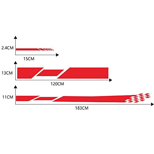 La lunghezza di questo adesivo laterale è di 183 cm, la larghezza è di 11 cm. La lunghezza di questo adesivo per specchietto laterale è di 15 cm, la larghezza è di 2,4 cm. La lunghezza di questo adesivo per cappuccio è di 120 cm, la larghezza è di 13 cm.