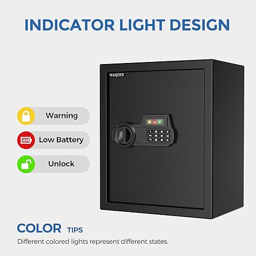 Robusta e sicura: WASJOYE cassaforte per la casa è realizzata in solido acciaio al carbonio, con uno spessore della porta di 5 mm. L'intero corpo della scatola è formato integralmente, con micro cuciture delle porte, cerniere nascoste antiscasso integrate e solidi bulloni delle porte. Questi design garantiscono che i tuoi oggetti di valore a casa o in ufficio siano sicuri e protetti.