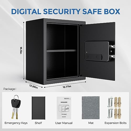 WASJOYE Cassaforte da Armadio o Muro, Cassetta di Sicurezza con Tastierino Numerico e Chiav, Digitale Casseforti Personale per Casa, Ufficio, Hotel, Soldi, Documenti, Gioielli, 43L(42 * 35 * 33cm)