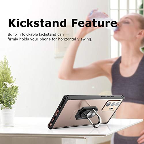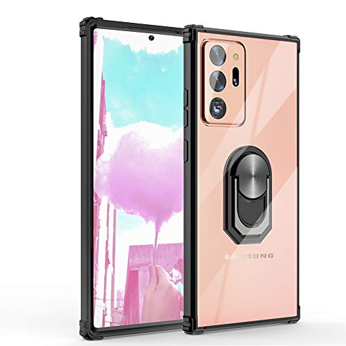 WATACHE Custodia Galaxy Note 20 Ultra,Armatura cristallina Defender Design Custodia Protettiva per Telefono Ibrida [Supporto Magnetico per Auto] per Galaxy Note 20+ Plus Ultra 6,9",Trasparente/Nero