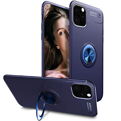 WATACHE Custodia iPhone 11, Custodia in TPU Resistente Slim Fit Impugnatura in Metallo Anello Dito Supporto cavalletto [Supporto Magnetico Auto] per Apple iPhone 11,Blu