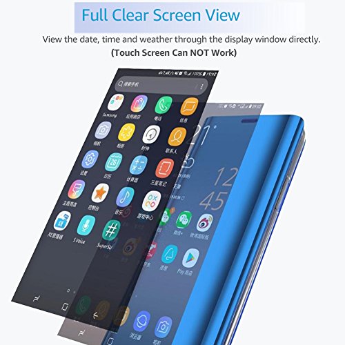 WATACHE Galaxy S9 Plus Custodia, S-View Specchio Trucco Placca Placcatura Stand Caratteristica Slim Custodia Protettiva Full Body Flip Cover per Samsung S9 Plus(Blu)