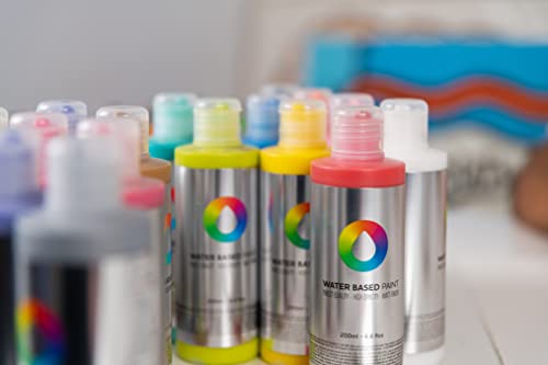 Completamente compatibile con il Montana vernice spray a base d' acqua, questa formula può essere applicato utilizzando strumenti diversi come ad esempio pennelli, aerografo, e naturalmente per riempire il Montana pennarelli a base d' acqua.