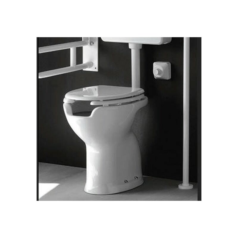 Vaso scarico terra con apertura frontale della serie Confort di Gsg Ceramic Design. Il wc è in ceramica bianco lucido, cm. 50x38xh49. L'apertura frontale è stata studiata appositamente per favorire l'igiene di colui che utilizza il prodotto. Wc sanitario a terra con apertura frontale in ceramica, bianco lucido I lavabi della serie Confort, hanno un design particolare specifico per le persone disabili e persone a mobilità ridotta. Non sono compresi con il wc e sono da acquistare a parte:la cassetta per lo scarico, nella versione incasso o nella versione installata a muro;