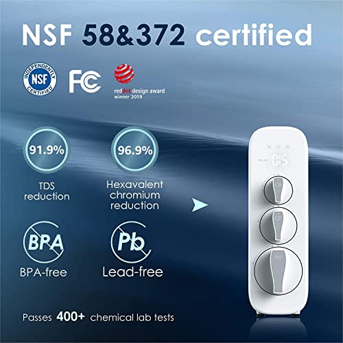 [Prestazioni di filtrazione eccezionali] Testato da un laboratorio di terze parti, attraverso la filtrazione a 8 stadi, il sistema di osmosi inversa senza serbatoio può ridurre efficacemente TDS, cromo, pfas, fluoruro, sale di arsenico, ferro, nitrato di radio, calcio, particelle, cloruro, cloro e metalli pesanti come il cromo esavalente nell'acqua del rubinetto per migliorare il gusto dell'acqua.