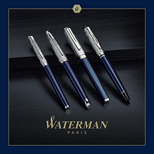 Waterman Expert penna roller | Collezione Made in France | Laccatura blu e metallo | Cappuccio cesellato | Inchiostro nero | Confezione regalo