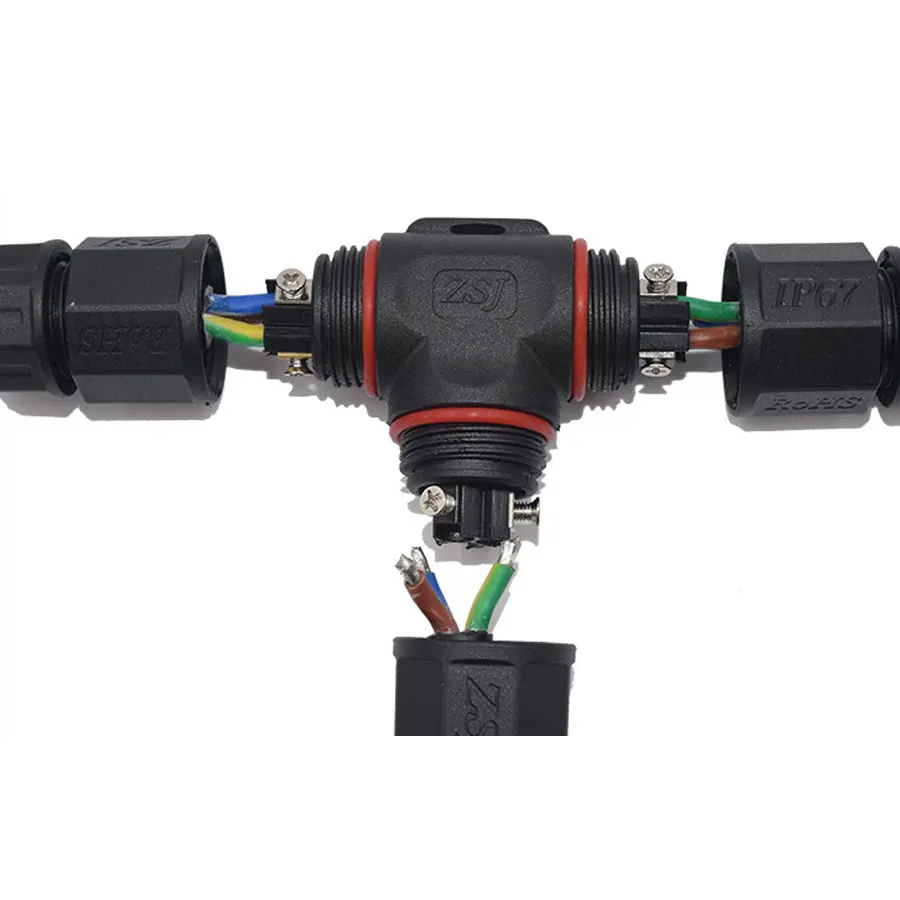 L20 Waterproof Cable Screw Connector T I Type SAA TUV CE IP67 Waterproof Wire Connector Plug 2pin 3pin Cable Screw Connector