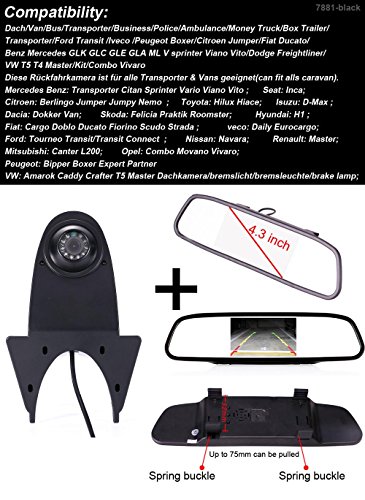 Waterproof Car Rear View Telecamera di retromarcia, Telecamera inversa di parcheggio+ 4.3"Specchietto retrovisore per Viano Vito Transit Ducato VW Crafter T5 Master tutti gli altri trasportatori