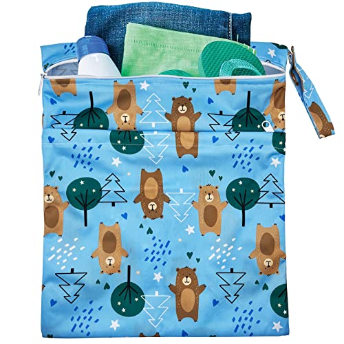 Waterproof Reusable Wetbag Asilo Nursery Travel Beach Pool Daycare Soiled Nappy Bags Wetbag Pannolini di stoffa Yoga Gym Pump Parts Bag for Swimsuits, Wet Clothes, Orsetti marroni, CUTE