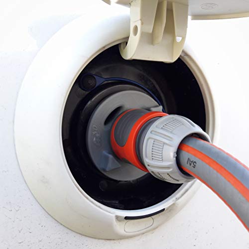 Watertwin Adattatore per il serbatoio dell'acqua per camper, accessori per caravan, tappo per il serbatoio dell'acqua con doppio connettore Gardena (adattatore per tappo del serbatoio a 2 pin D:78)