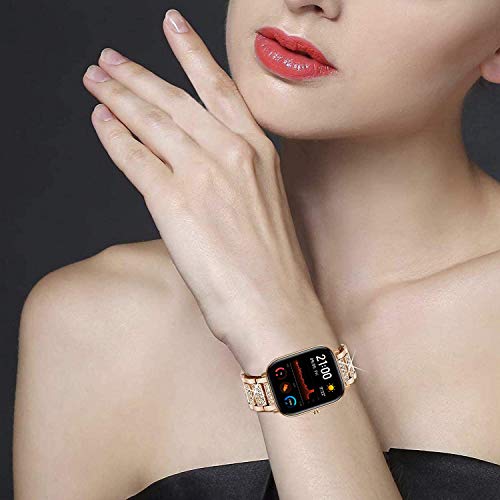 WATORY Cinturino di Ricambio per Amazfit GTS/GTS 2 / GTS 2 Mini/GTS 2e / GTS 3, Acciaio Inossidabile a sgancio rapido con Cinturino in Cristalli per Amazfit Bip/Bip U PRO/Bip S, Oro Rosa