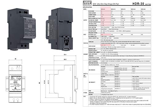 5 VDC | 3 A | 15 Watt | Mean Well HDR-30-5 alimentatore guida DIN Rail