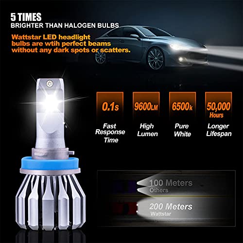 Wattstar Kit conversione lampadine LED, 64W Super Bright Hi/Lo Lampada frontale con ventola, IP67 Flip Chip 9600 LM 6500K Bianco 2-Pack (S19-H11)