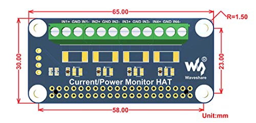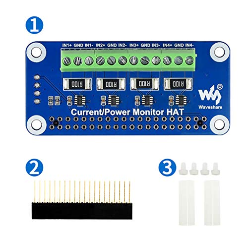 Waveshare 4-ch Current/Voltage/Power Monitor Hat for Raspberry Pi I2C/SMBus Interface Easy to Monitor Each Channel's Current, Voltage, And Power Consumption