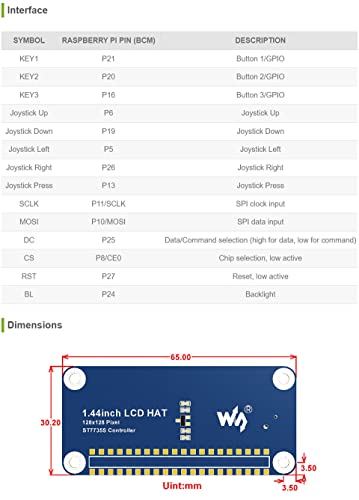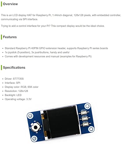 Waveshare 1.44inch LCD HAT, 128x128 Pixels, Mini Display Expansion Board, Compatible with Raspberry Pi