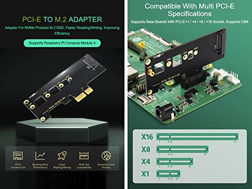 Waveshare Adattatore PCIe a M.2 Supporta Raspberry Pi Compute Module 4 Adattatore per NVMe Protocollo M.2 SSD Più veloce Lettura/Scrittura Migliorare l'efficienza