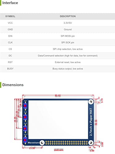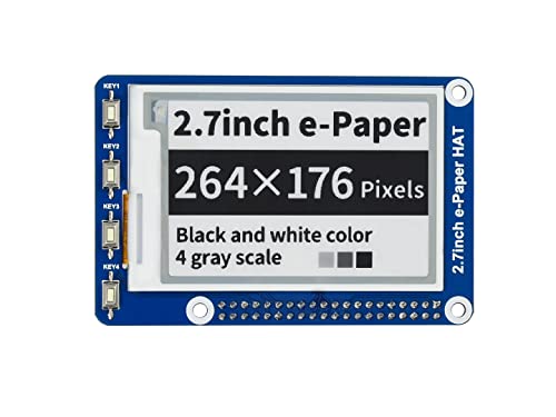 Waveshare 2.7 Inch E-Paper Display HAT Module Kit 264x176 Resolution 3.3v E-ink Electronic Paper Screen with Embedded Controller for Raspberry Pi 2B 3B Zero Zero W SPI Interface