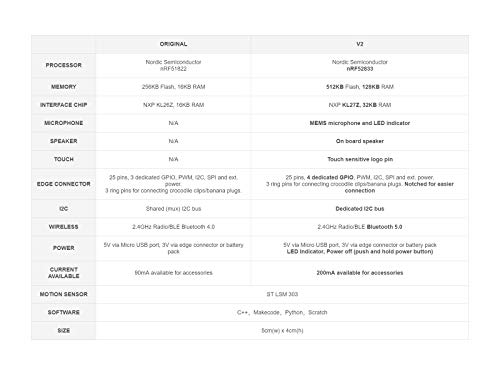 Il micro:bit V2 adotta un processore ARM Cortex-M4 nRF52833 più veloce, integra 2.4G Radio/BLE Bluetooth 5.0 e ora include microfono MEMS integrato, altoparlante e pin logo sensibile al tocco, consentendo alle persone di essere creativi più facilmente attraverso il rilevamento del suono e del tocco