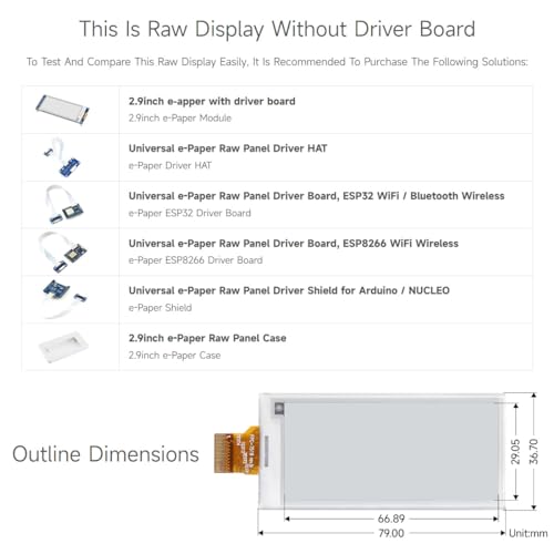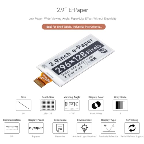 Waveshare 2,9 pollici E-Paper Raw Display Panel 296 x 128 Resolution 3,3 V E-Ink Electronic Paper Screen Without PCB with Embedded Controller Support Partial Refresh,Communicating Via SPI interfaccia