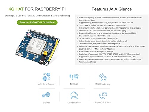 Waveshare 4G/3G/2G/GSM/GPRS/GNSS HAT for Raspberry Pi Jetson Nano Based on SIM7600G-H Supports LTE CAT4 up to 150Mbps for Downlink Data Transfer The Global Version Positioning Module