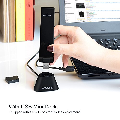 WAVLINK AC1300, adattatore WiFi potente, Dongle Wi-Fi, doppia banda USB3.0 con pulsante WPS e base compatibile con Mac OS, Windows XP/Vista/7/8/8.1/10