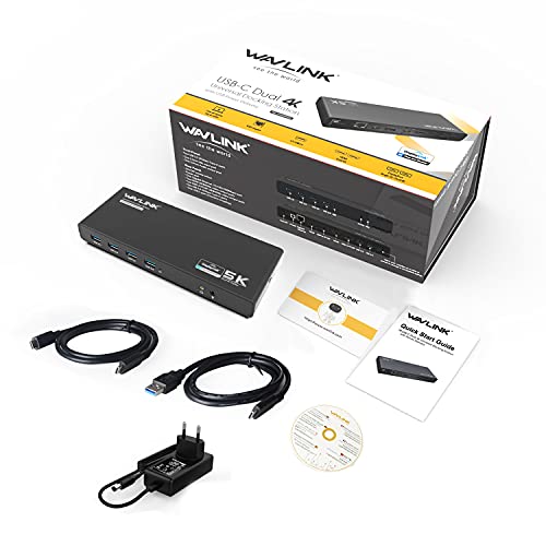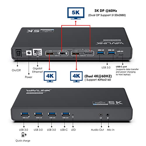WAVLINK - Docking station universale per computer portatile con doppio monitor con ricarica da 65 W, doppio display da 4 K a 60 Hz e singolo display da 5 K a 60 Hz per Windows