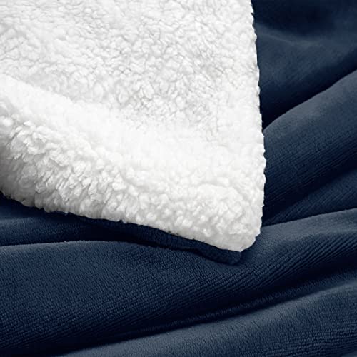 WAVVE Plaid Coperta di Pile Sherpa Agnellato e Flanella - 220x240 cm, Blu Navy - Plaid Coperta Letto Matrimoniale/Una Piazza e Mezza, 240x220
