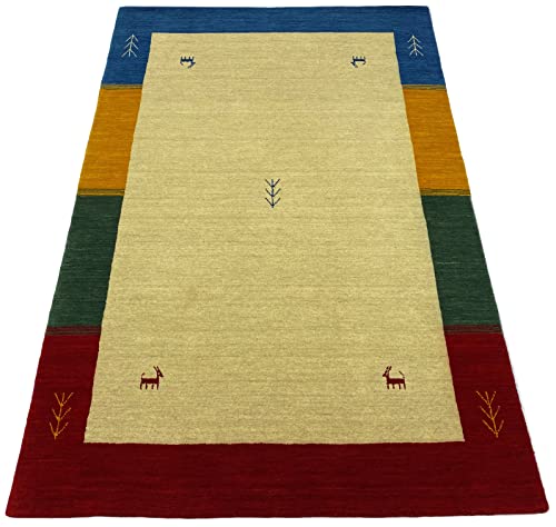 WAWA TEPPICHE Tappeto Orientale Gabbeh Loom Realizzato a Mano 100% Lana Lori Buff Debbich (Beige, 120_x_180_cm)
