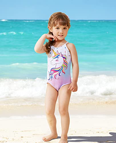 WAWSAM Costume da Bagno Intero con Unicorno per Ragazze e Bambine, Arcobaleno, 3 Anni