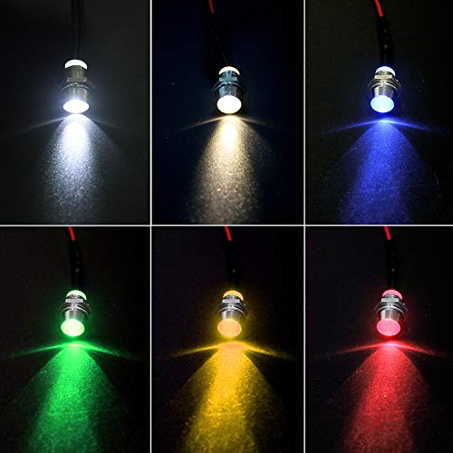 【Con 20cm Filo】L'indicatore luminoso a LED viene fornito con filo di saldatura da 20 cm per un facile collegamento. La resistenza integrata da 1 / 4W può proteggere il LED dall'ustione.