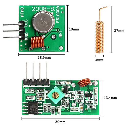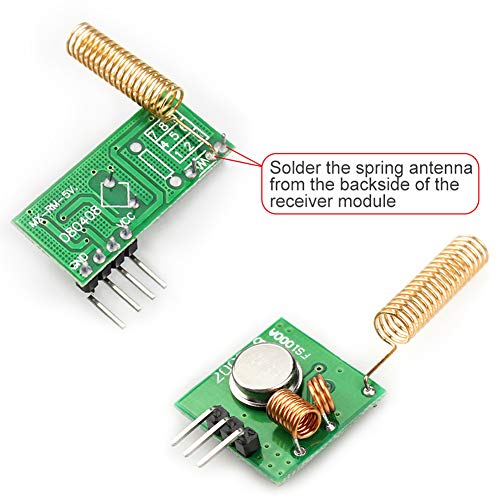 【Perfetto Kit】 Questo kit comprende 3 coppie di moduli trasmettitore e ricevitore e 3 coppie di antenne a molla per aumentare la distanza di comunicazione. E la frequenza è 433 MHz. È molto popolare per i sistemi di controllo remoto, come cancelli scorrevoli per telecomando, auto intelligente, casa intelligente, ecc.
