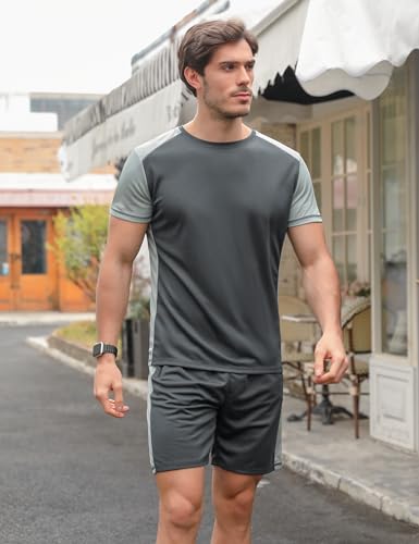 Wayleb Completi Sportivi Uomo Estivi Tuta Sportiva Uomo Tuta da Fitness Maniche Corte Pantaloncini Tuta da Ginnastica Uomo per Jogging Fitness, S-XXL