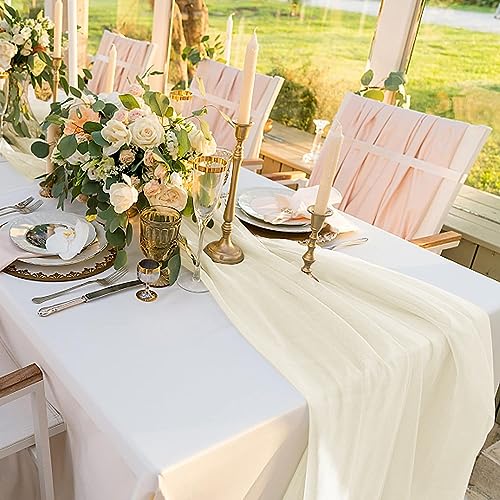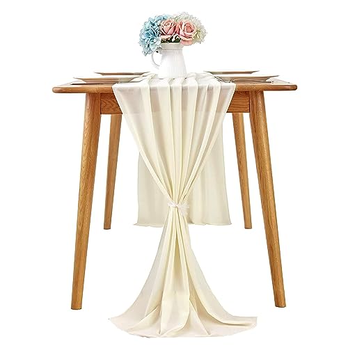 Waylipun Runner da Tavola in Chiffon, 70 x 300 cm, Lavabile, Runner per La Tavolo da Pranzo in Chiffon Table per Decorazioni, per Matrimoni, Compleanni, Baby Shower, Comunioni (Beige)